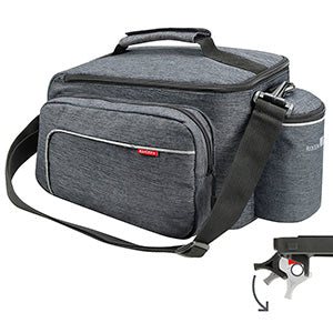 Neue Rackpack Generation mit extra stabiler Konstruktion, frischer Optik und neuem UniKlip 2 Adapter. Durch ihren neuartigen Aufbau hält sie auch bei sportlicher Fahrweise zuverlässig ihre Form. Mit zwei Seitentaschen, Flaschenfach, Innentasche, Reflektor, Schultergurt, Tragegriff mit Klett zum Sichern des Tragegurtes und Regenhaube. Belastbar bis max. 6 kg.