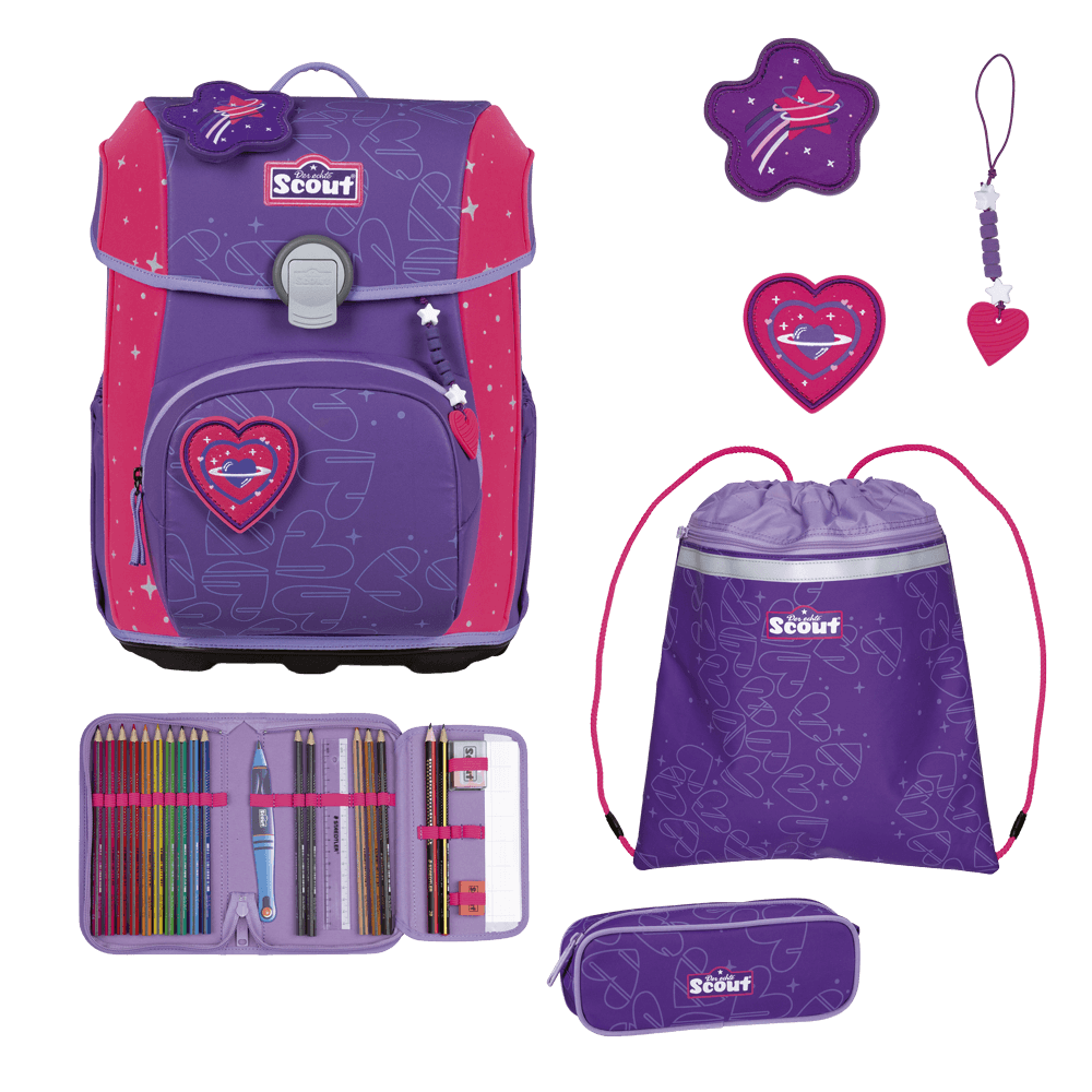 Ab ins Einhorn-Land: mit unserem schlanken Schulranzen Scout Neo Superflash Exklusiv Extreme Unicorn. Durch seine riesigen Reflexflächen strahlt der Ranzen besonders stark, wenn er im Dunkeln, z. B. von Autoscheinwerfern, angeleuchtet wird. So sind Kinder nicht zu übersehen. Zudem sitzt er ergonomisch und bietet beste Rundumsicht dank flachem Deckel. Das Beste aber: Sportbeutel, Federmäppchen mit Staedtler Qualitätsbuntstiften, Schlamperetui, 2 bezaubernden Funny Snaps Move und 1 Anhänger sind inklusive.